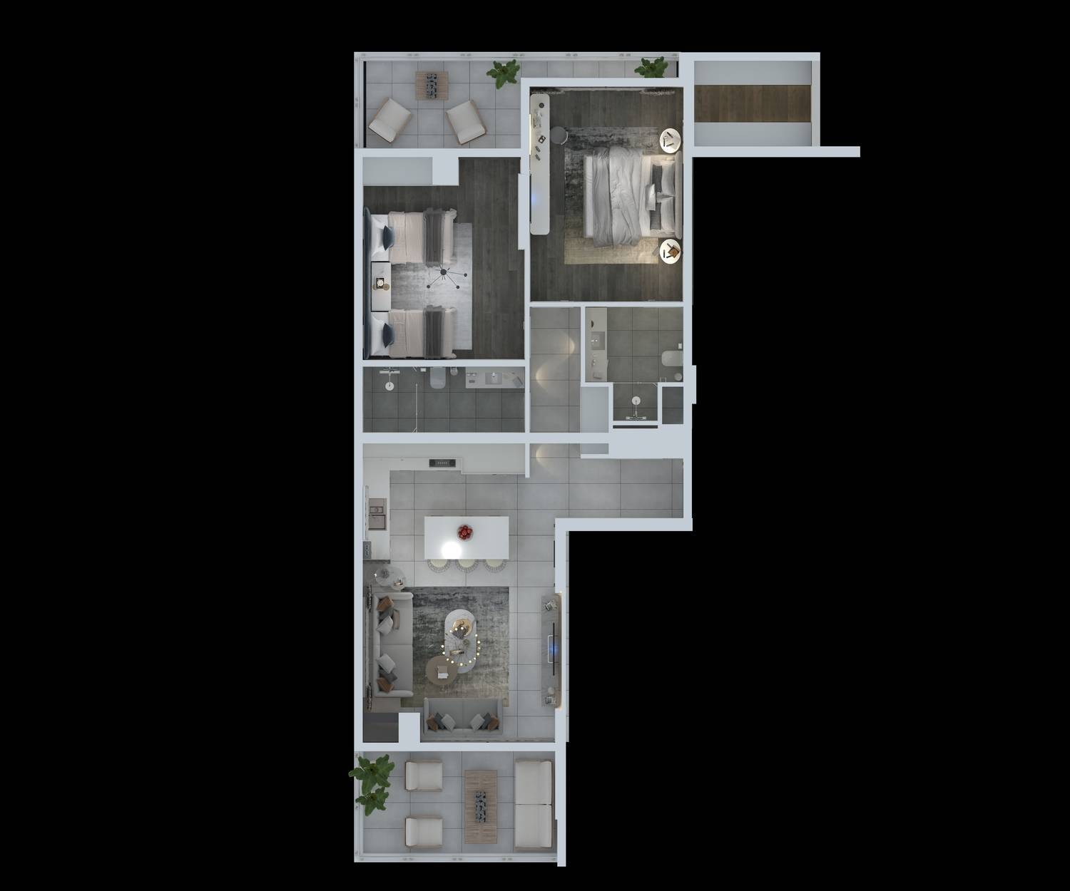 Area: 2+1 - 134 m2 gross with 2 bathrooms and 2 balconies with panoramic sea view