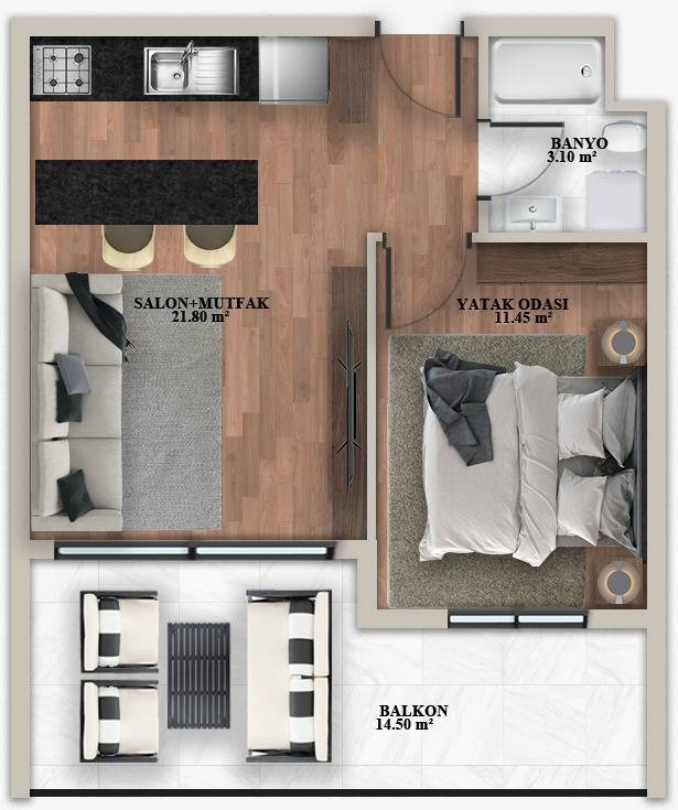 Новая квартира 1+1 в малоэтажном доме в Томюке, Мерсин