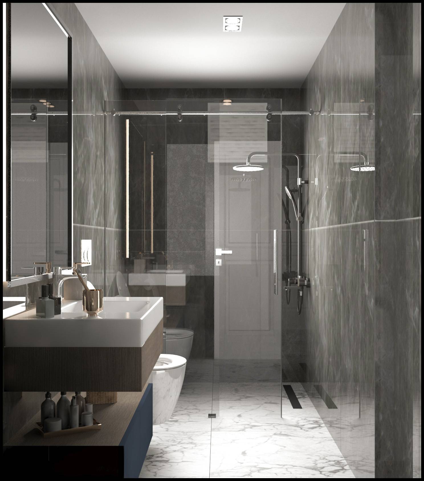 - В ванной комнате: душевая кабина, раковина, унитаз, осветительные приборы