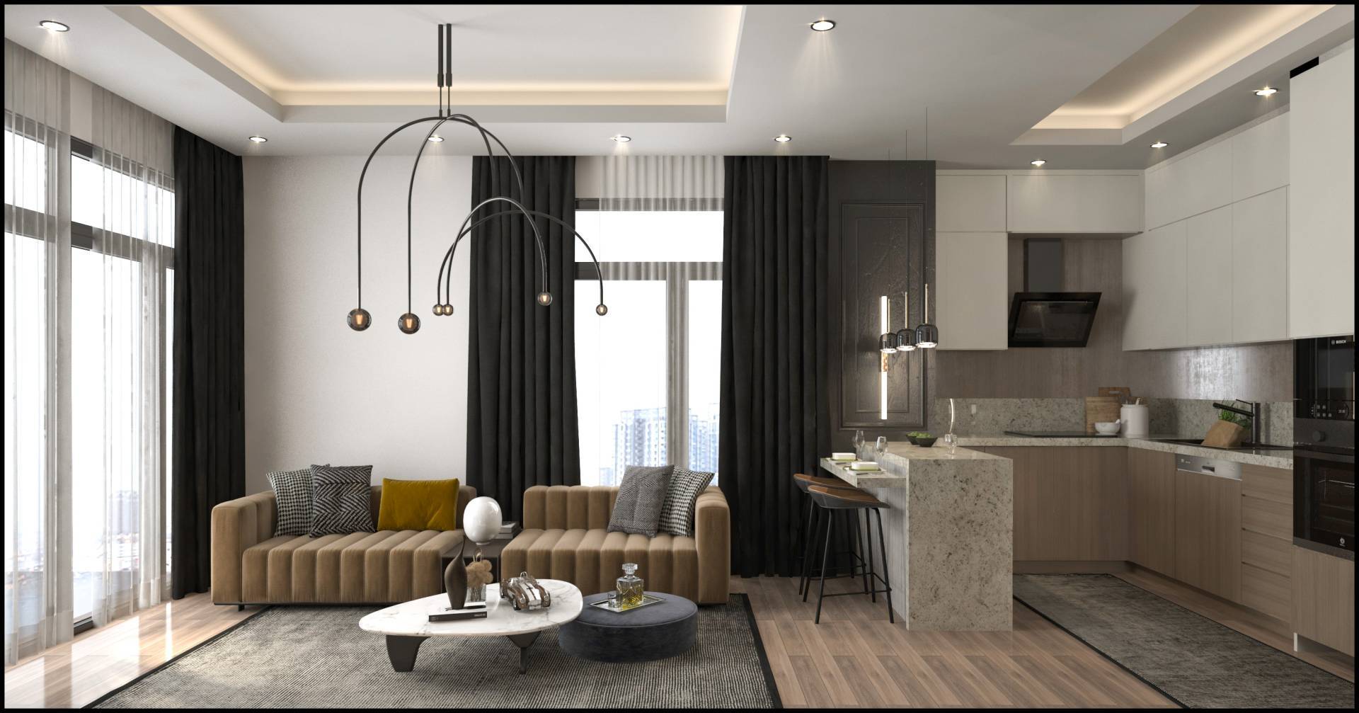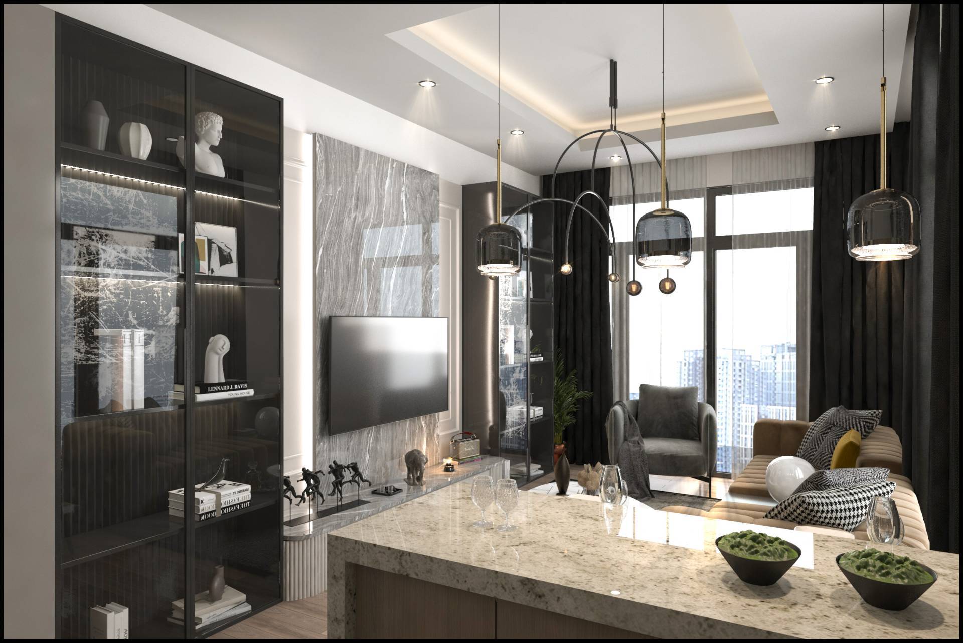 - Кухонный гарнитур, каменная столешница