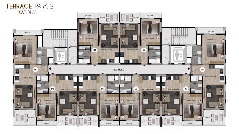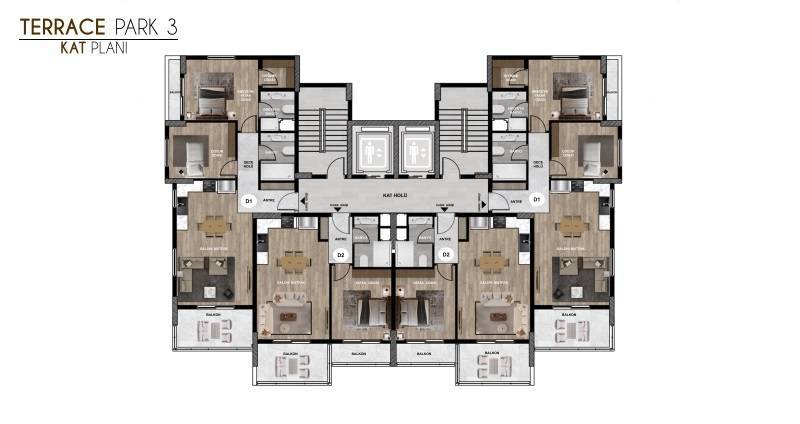 Салон, 2 спальни, прихожая, сан. узел, терраса, балкон